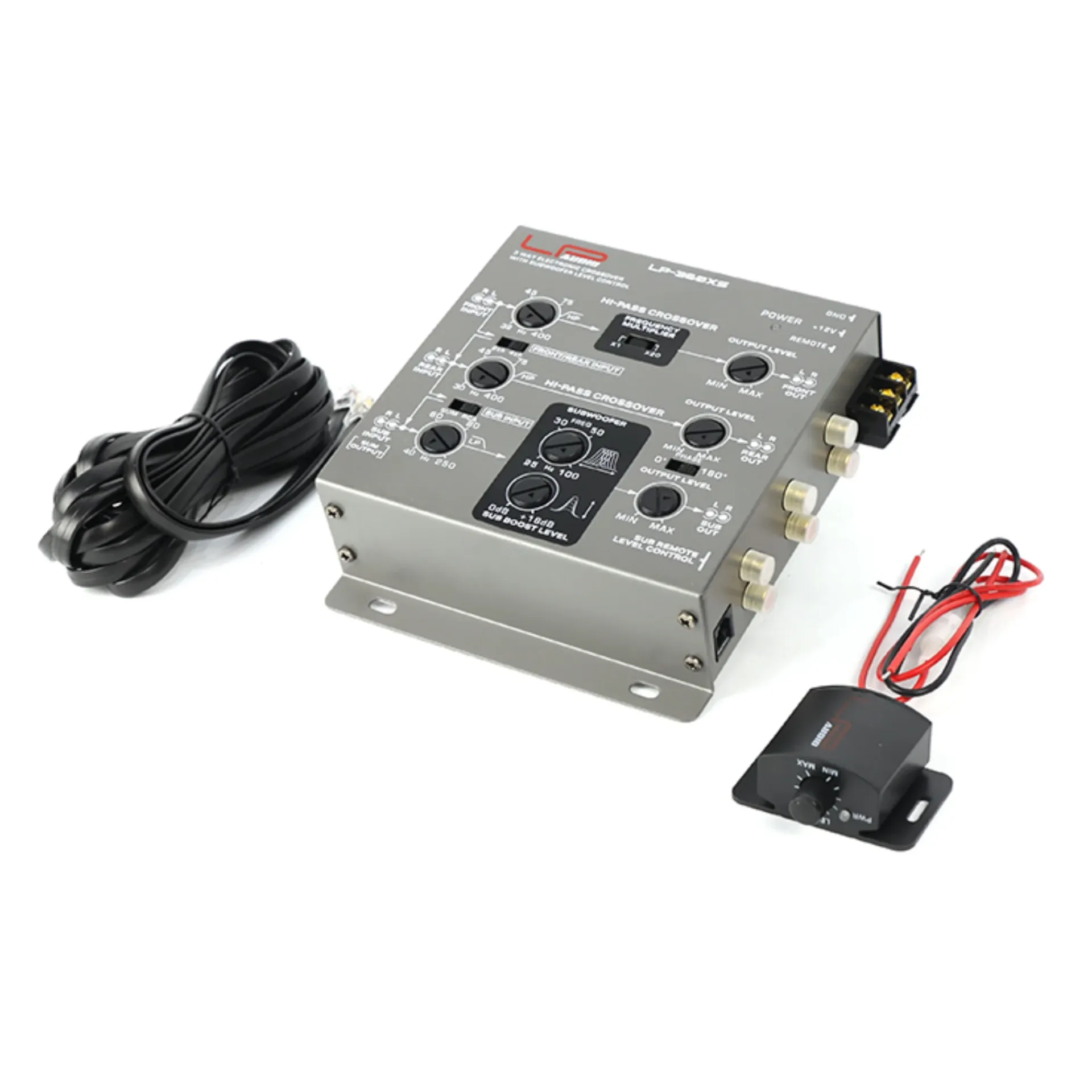 Este crossover de 3 vías incluye un control remoto para subwoofer y ofrece una pendiente de cruce de 12dB por octava en el cruce de baja frecuencia, además de un multiplicador de frecuencia X20 para el canal frontal.